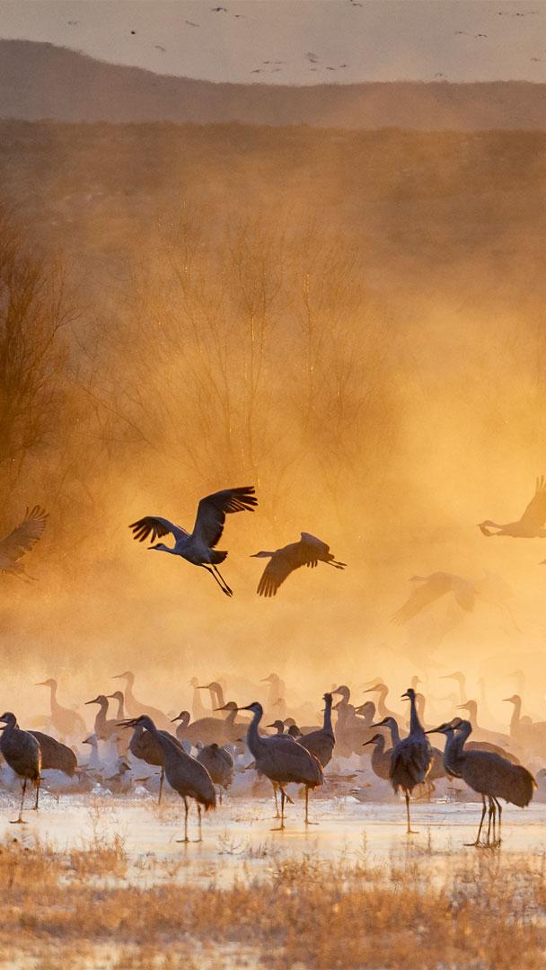 Sandhill cranes, Bosque del Apache National Wildlife Refuge, New Mexico © Jack Dykinga/Minden Pictures