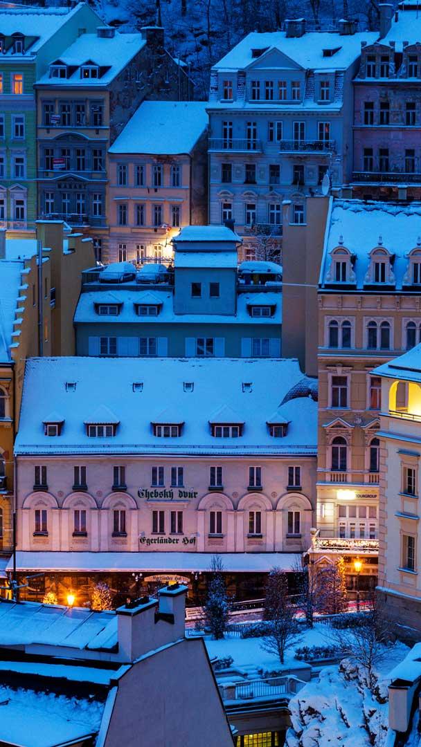 In today"s image, winter settles over Karlovy Vary in Czechia, a pastel valley that built its identity around the hot springs rising through its hills. The eponymous city traces its beginnings to accounts of Charles IV, then king of Bohemia (a historic region of Czechia) and later Roman Emperor, encountering a steaming pool here in the 14th century, an early moment that set this quiet part of Bohemia on the path to becoming a spa retreat.