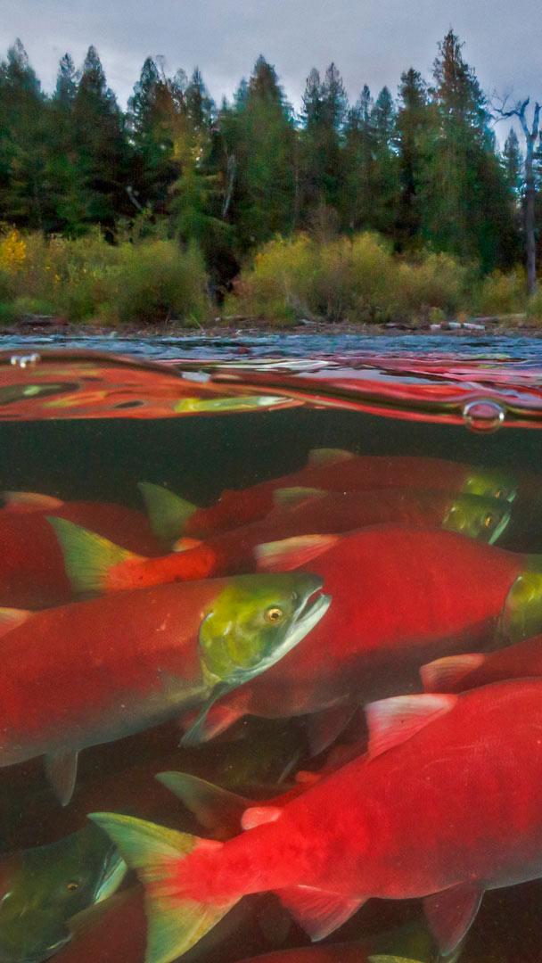 If you live in the Pacific Northwest, you may get a chance to view migrating salmon this fall. For the sockeye salmon shown here, the epic journey takes them from the waters of the Pacific Ocean back to the freshwater lakes and streams where they were born. There they’ll spawn, their bodies turning from a silvery blue to crimson and changing shape in the process. This isn’t always an easy journey. Dams and other human interventions have affected salmon runs, and West Coast salmon numbers have been in decline. We’re fans of groups like Long Live the Kings, a Pacific Northwest nonprofit that’s helping rebuild salmon populations and protect their habitat—for the long run.