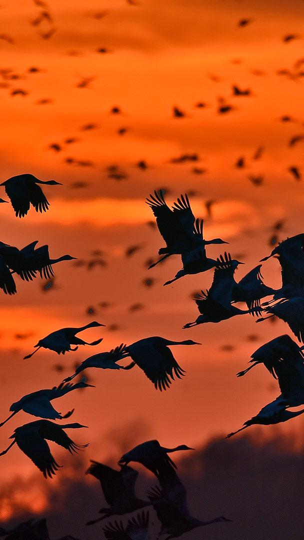 Every year, from February to April, 80 percent of North America’s sandhill crane population stops in Nebraska to eat and rest before finishing their lengthy migration to the northern reaches of Canada, Alaska, and even Siberia. Tourists flock (sorry) to nearby towns such as Kearney, Nebraska, to watch this spectacle take place. Some half a million cranes stop to wade through the shallow braids of the Platte River in the valley here, feasting on crop residue from the many cornfields in the area.